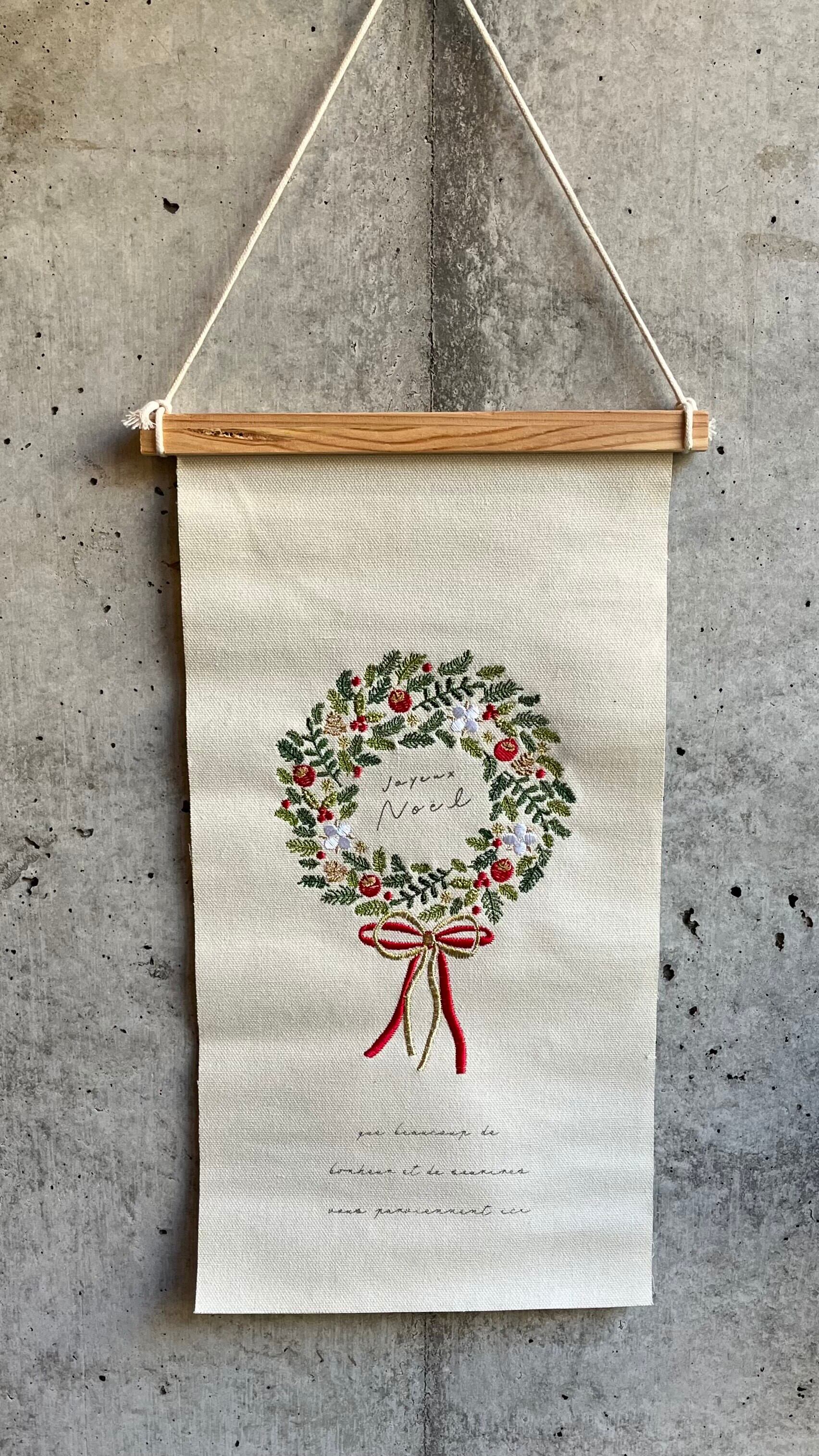 玄関やお部屋に飾ることで、クリスマスの特別な雰囲気を引き立てるタペストリーです。