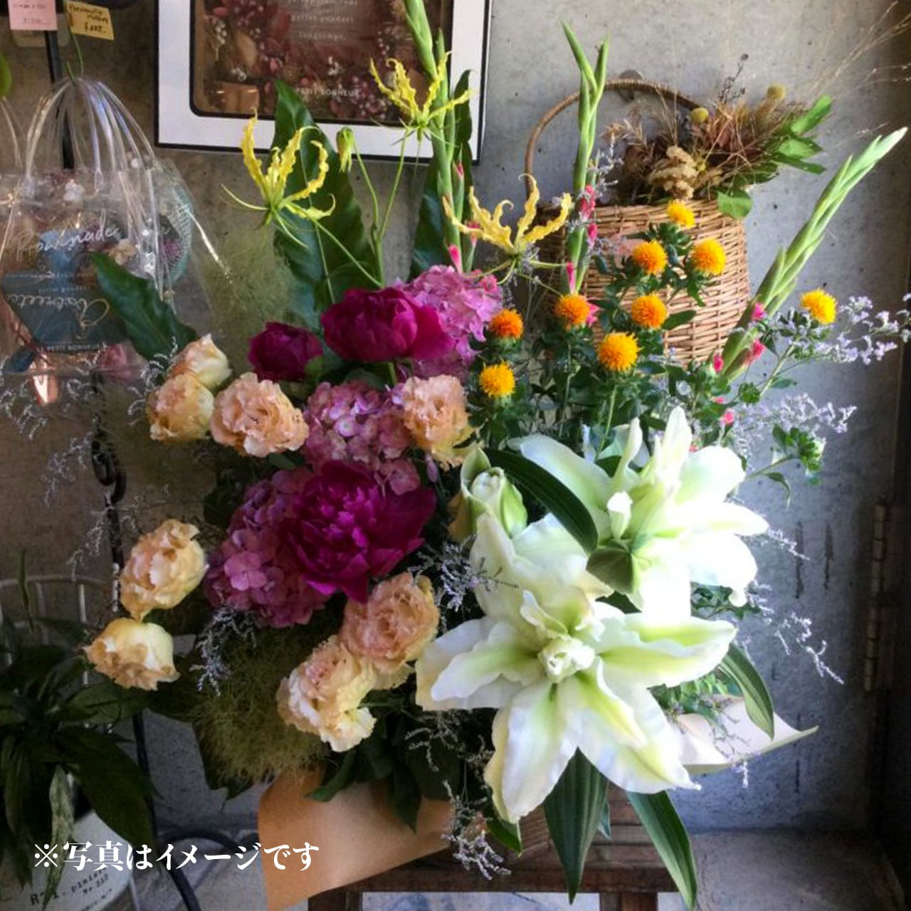 上品で洗練されたデザインが特徴のアレンジ。高品質な花材を使用し、特別なイベントや大切な記念日にふさわしい一品。